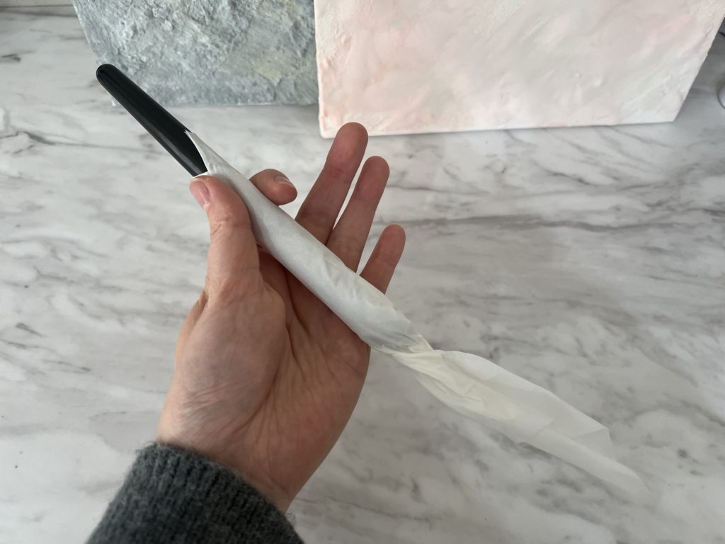 広がらないようにティッシュで優しく巻いて